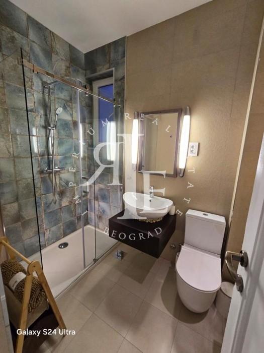 Kompletno renoviran sa visokokvalitetnim materijalima i pažljivo biranim detaljima, ovaj stan pruža osećaj elegancije i udobnosti već pri prvom ulasku. Svetao dnevni boravak u spoju sa kuhinjom i lođom, izdvojena spavaća soba, moderno kupatilo i zasebna prostorija za veš i skladištenje – svaki kvadrat pažljivo je iskorišćen i estetski usklađen.